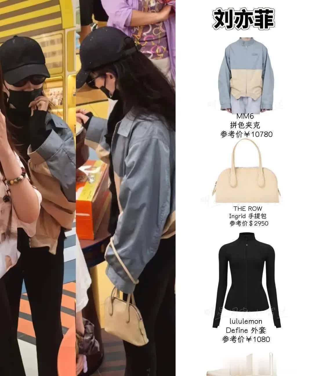 那天她在暹罗天地商场,全球最大的泡泡玛特主题餐厅里。黑色外套,黑色裤子,帽子口罩墨镜全戴着,手里拎着个杏色的The Row包。身边跟着三个工作人员,不远不近地护着。